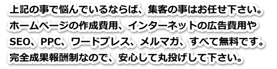 つまり、集客の事は専門家に全て丸投げして(インターネット集客代行を任せて)